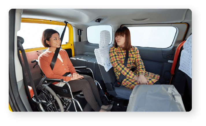 千代田では通常のUDタクシー(側面乗込)の半分以下の時間で、乗りやすく快適な移動を提供いたします。